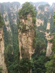 8日早上,我們乘坐“世界第一梯”——百龍?zhí)焯葜猎医绶屙?,這里是舉世聞名,奇特罕見(jiàn)的砂巖地貌。舉目遠(yuǎn)望,三千奇峰盡收眼底,怪石嶙峋,星羅棋布,雄險(xiǎn)秀野,神態(tài)各異。峽谷深處,千百根石峰石柱奇?zhèn)ネ涣ⅰ>椭?,如英武將帥;嵯峨之峰,似勇猛壯士。天氣陰沉,下起小雨,此時(shí),峰谷內(nèi)云翻霧涌,數(shù)座山峰如中流砥柱巋然屹立于云霧之中,云海淼淼,如入蓬萊仙境,那里面一定住著神仙吧。