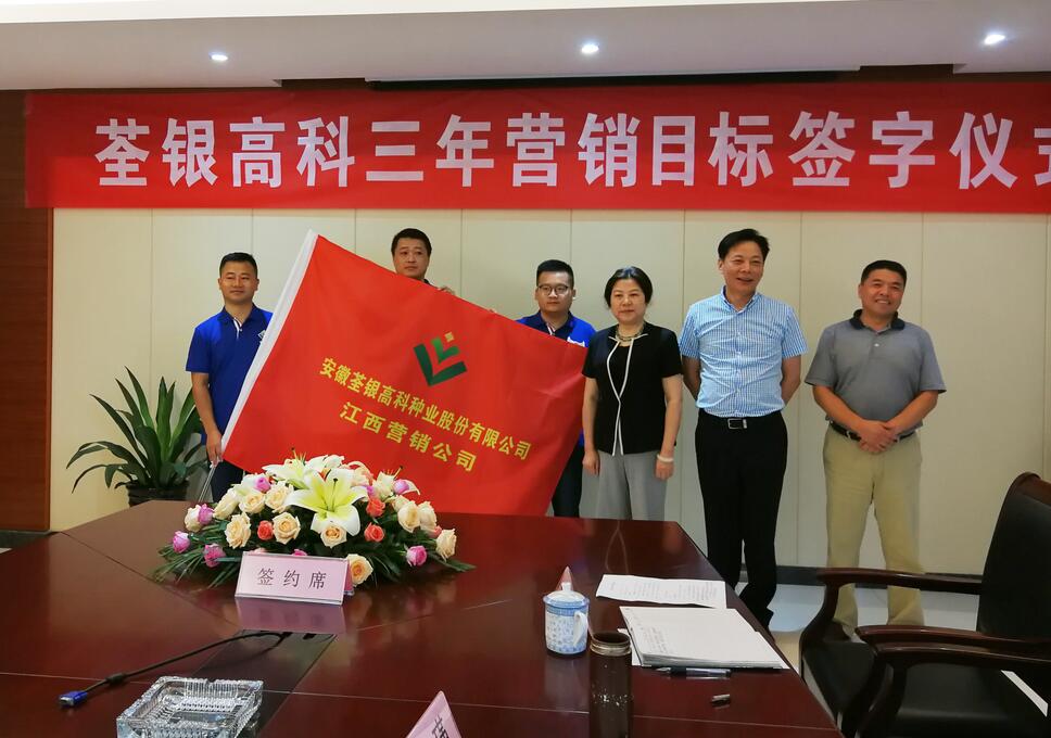 ??? 會上,荃銀高科副總經理朱全貴、營銷總監(jiān)王玉林分別與玉米小麥專業(yè)公司、安徽營銷公司、江西營銷公司、湖北營銷公司、湖南營銷公司負責人簽訂三年經營協(xié)議書。