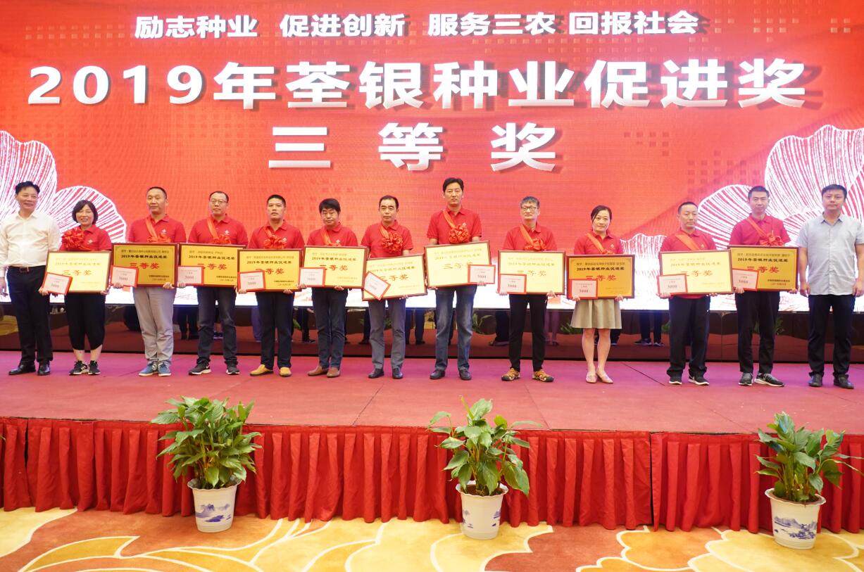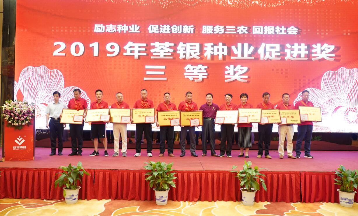 ??? 深耕種業(yè),不忘初心。8月19-20日,安徽張海銀種業(yè)基金會(huì)2019年“荃銀種業(yè)促進(jìn)獎(jiǎng)”頒獎(jiǎng)大會(huì)暨荃銀高科安徽營(yíng)銷公司品種政策發(fā)布會(huì)在安徽蕪湖隆重召開(kāi)。安徽省種子管理總站副站長(zhǎng)劉根、中國(guó)貿(mào)促會(huì)蕪湖市支會(huì)會(huì)長(zhǎng)常拯、蕪湖市種子管理站副站長(zhǎng)陳煒平、安徽荃銀高科種業(yè)股份有限公司副董事長(zhǎng)兼總經(jīng)理張琴、常務(wù)副總經(jīng)理兼營(yíng)銷總監(jiān)王玉林、安徽張海銀種業(yè)基金會(huì)秘書(shū)長(zhǎng)張彤、建設(shè)銀行、益海嘉里等單位相關(guān)領(lǐng)導(dǎo)及安徽、江蘇、河南等省近200位種業(yè)精英們參會(huì)。