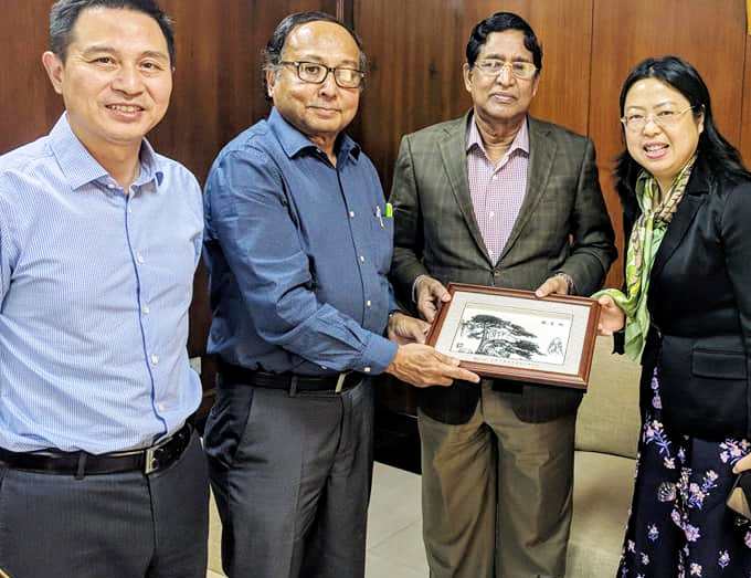 ??? 會見伊始,拉扎克部長對荃銀高科一行來訪表示熱烈歡迎,在聽取了荃銀高科過去十多年間在孟加拉推廣雜交水稻與優(yōu)質(zhì)蔬菜等農(nóng)作物良種、開展本土化品種選育和種子生產(chǎn)情況匯報后,給予高度贊賞與肯定。拉扎克部長介紹了孟加拉糧食生產(chǎn)及農(nóng)業(yè)現(xiàn)狀,農(nóng)業(yè)部當前鼓勵農(nóng)民以非傳統(tǒng)種植代替過去的傳統(tǒng)作物種植,以獲得更高經(jīng)濟效益。他建議,荃銀高科作為中國知名種業(yè)高科技企業(yè),對亟待加強的孟加拉食品加工業(yè)進行投資,該國農(nóng)業(yè)部將在企業(yè)用地、擴大規(guī)模方面給予支持,提供保障。他表示,將對荃銀高科與孟加拉農(nóng)業(yè)部農(nóng)業(yè)發(fā)展公司在雨季水稻新品種選育及種子生產(chǎn)領(lǐng)域方面的合作給予積極支持。