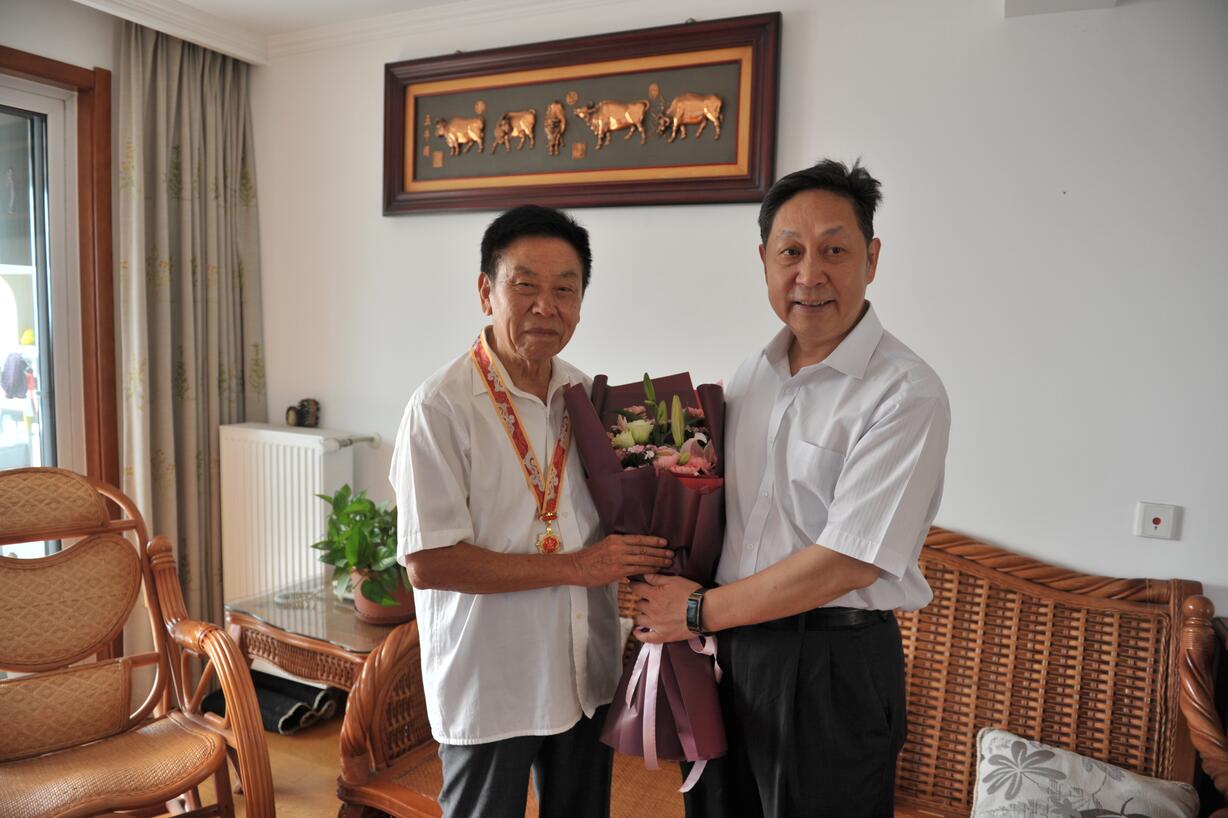 ??? 近日,中共中央、國(guó)務(wù)院、中央軍委聯(lián)合向全國(guó)頒發(fā)“慶祝中華人民共和國(guó)成立70周年”紀(jì)念章活動(dòng),以慶祝中國(guó)人民共和國(guó)成立70周年。9月25日,安徽省科學(xué)技術(shù)獎(jiǎng)勵(lì)工作辦公室劉瑞奇主任一行代表安徽省人民政府,將“慶祝中華人民共和國(guó)成立70周年”紀(jì)念章頒發(fā)給“中國(guó)種業(yè)十大功勛人物”、安徽荃銀高科種業(yè)股份有限公司創(chuàng)始人、安徽張海銀種業(yè)基金會(huì)理事長(zhǎng)張海銀先生,并送上鮮花,轉(zhuǎn)達(dá)了黨和政府的親切慰問(wèn)與關(guān)懷。