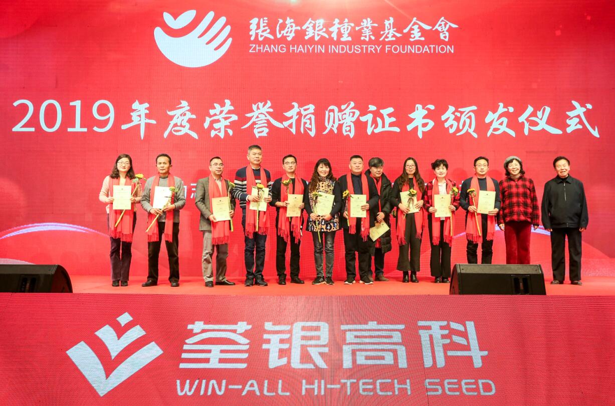 ? ? 公益無(wú)界,大愛(ài)無(wú)疆。會(huì)議還進(jìn)行了安徽張海銀種業(yè)基金會(huì)頒發(fā)捐贈(zèng)證書(shū)儀式,鼓勵(lì)更多人踐行公益,傳遞社會(huì)大愛(ài)力量。會(huì)議現(xiàn)場(chǎng),荃銀高科員工及有關(guān)愛(ài)心人士向安徽張海銀種業(yè)基金會(huì)捐贈(zèng)共計(jì)40.78萬(wàn)元,用于激勵(lì)為中國(guó)種業(yè)發(fā)展作出突出貢獻(xiàn)的集體和個(gè)人,以及助學(xué)公益項(xiàng)目和慈善事業(yè),助力公益,薪火相傳。