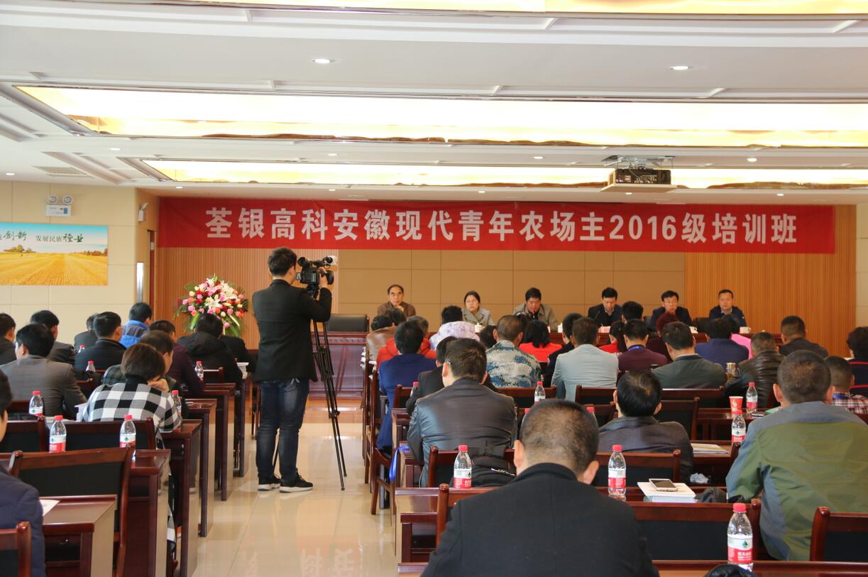 2017年3月27日上午,荃銀高科安徽現(xiàn)代青年農(nóng)場(chǎng)主2016級(jí)培訓(xùn)班開班儀式在肥舉行。合肥市農(nóng)委主任夏倫平、共青團(tuán)安徽省委農(nóng)村工作部副部長(zhǎng)陳永剛、安徽農(nóng)業(yè)大學(xué)農(nóng)學(xué)院黨委副書記鄢高翔、荃銀高科董事長(zhǎng)張琴等領(lǐng)導(dǎo)出席開班儀式。
